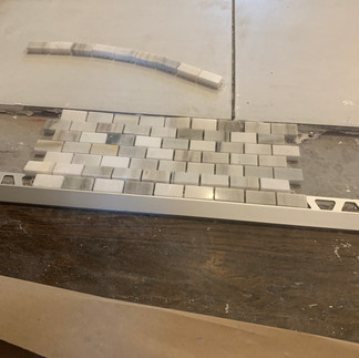 We wanted to create more of an open floor plan and that led us to remove a high-top bar that you saw as soon as you walked through the front door. We hired a reputable contractor who we had worked with before to remove the bar and install a beam for support. After that, the floors starting coming up. We wanted to match the original 1950's hardwood floors and run them throughout the kitchen and dining room but found that to be difficult as they don't make hardwood flooring like they used to. This caused us to pivot a bit to add a transition tile to define the spaces and then lay 20 x 20 White Ash tile from Daltile with a frost grout. We also used the transition tile on the step down into our dining room area.